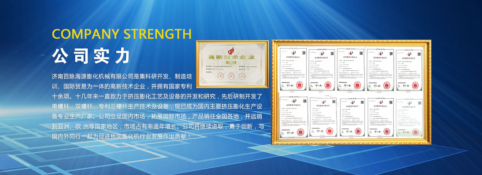 濟南百脈海源膨化機械有限公司是集科研開發、制造培訓、國際貿易為一體的高新技術企業,并擁有國家專利十余項。十幾年來一直致力于擠壓膨化工藝及設備的開發和研究,先后研制開發了單螺桿、雙螺桿、專利三螺桿生產技術及設備,現已成為國內主要擠壓膨化生產設備專業生產廠家。公司立足國內市場,拓展國際市場,產品銷往全國各地,并遠銷到亞洲、歐洲等國家地區,市場占有率逐年增長。公司將繼續進取,勇于創新,與國內外同行一起為促進我國膨化機行業發展作出貢獻!